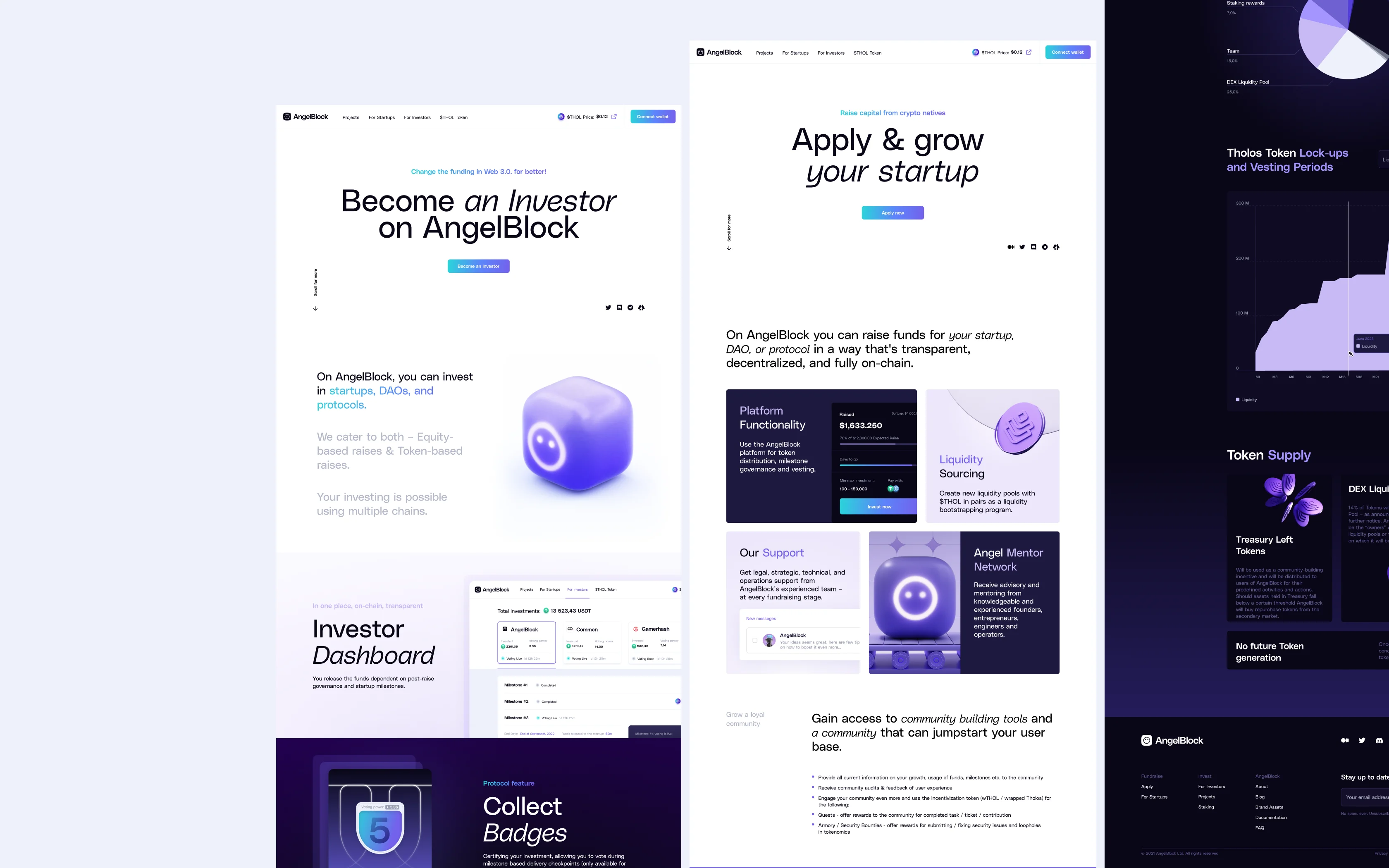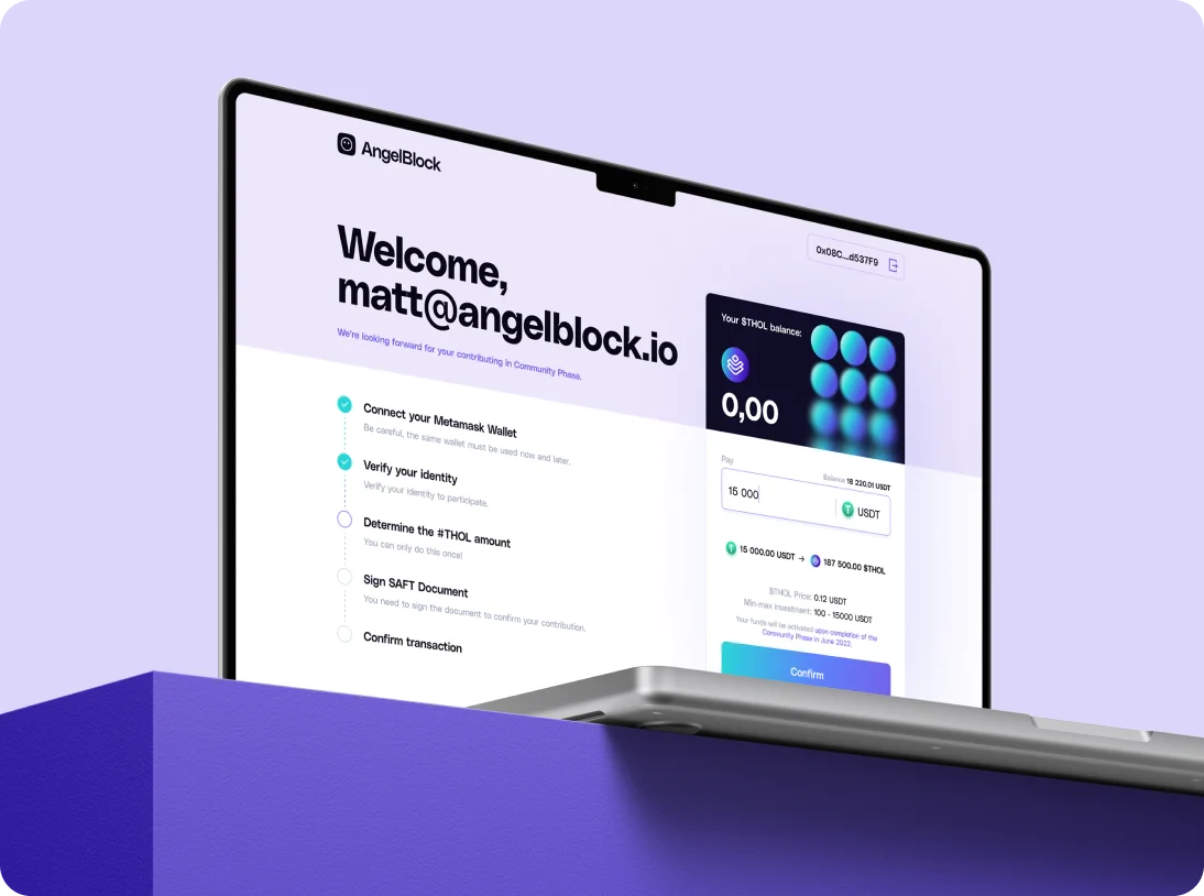 Vi designade AngelBlocks fullständiga identitet och plattform.Ett non-custodial protokoll som förvandlar komplexa fundraising-mekanismer till ett transparent och säkert gränssnitt för Web3-investerare.