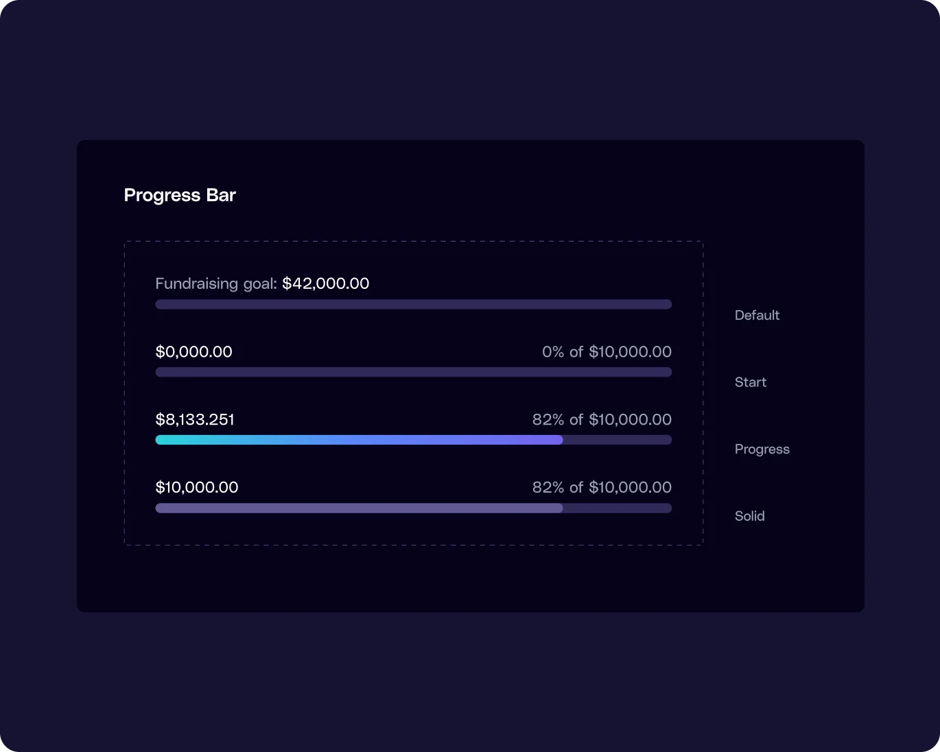 Vi byggde ett bibliotek av återanvändbara komponenter, inklusive förloppsindikatorer och wallet-anslutningar, som fungerar sömlöst över både light och dark mode. Detta säkerställer att oavsett om en användare stakar en NFT eller röstar på en milstolpe förblir upplevelsen konsekvent och säker över hela ekosystemet.